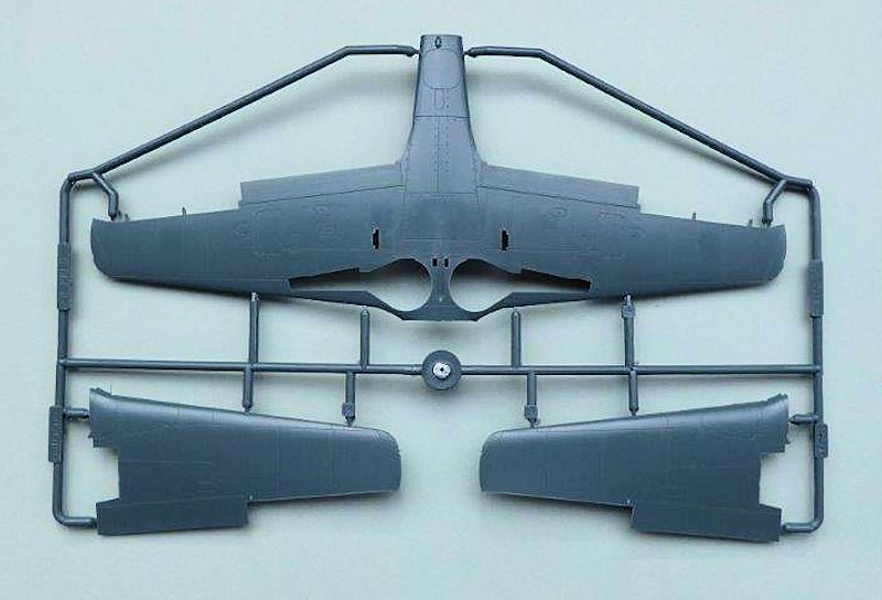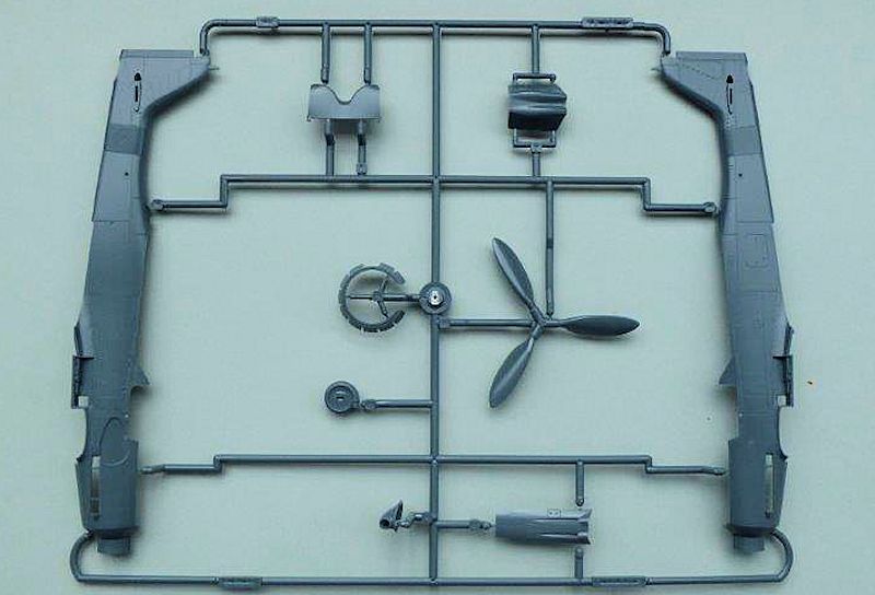 Die beiden großen grauen Spritzlinge sind auch im jeden anderen Bausatz der Bf 109 Serie zu finden und bilden den Grundstock des Bausatzes.