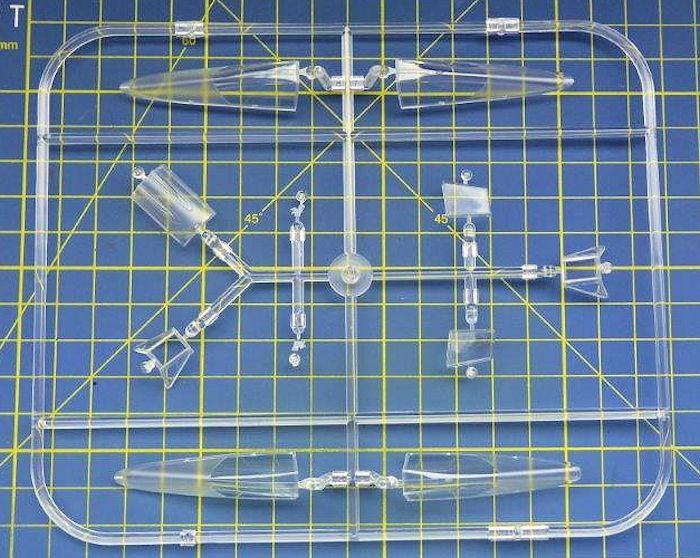 Es liegen auch zwei Klarsichtspritzlinge mit verschiedenen Cockpithauben (Gallandhaube) bei, deren Verwendung der Bauanleitung zu entnehmen ist.