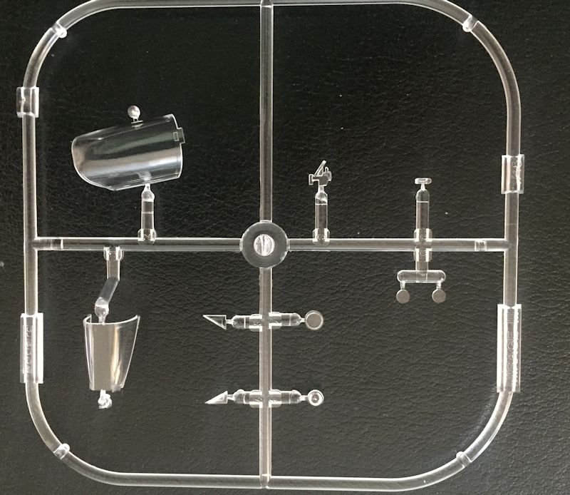 Die 146 Teile (an acht dunkelgrauen Ästen) sind sauber und detailliert, wie man es von einem Bausatz von 2004 erwarten kann. Die Nietenreihen und die sonstigen Einzelheiten am Rumpf sind gut herausgearbeitet. Ordentlich bemalt wird dies sehr gut aussehen. Fischhäute sind bis auf einige kleine Stellen nicht erkennbar. Mit dem Skalpell sind diese in einer Minute beseitigt.