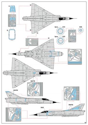 Mir ist völlig unklar, weshalb die Anleitungen bei fast allen Firmen zwar immer farbiger und verständlicher daherkommen, jedoch weiterhin eine Art von Zeichensprache gegenüber dem Verwender gepflegt wird. Ich erinnere mich an alte Bausätze von Revell, in denen neben der bebilderten Anleitung auch noch eine Textanleitung enthalten war. Das war natürlich nur den schlechten Abbildungen geschuldet, aber was hindert die Firmen eigentlich an einem kleinen Text, der die Tücken des Aufbaus beschreibt? Einfaches Englisch wird verstanden. Es gibt auch den Google Übersetzer, denn wie sollte man sonst durch die unsägliche Prosa englischer Modellbauzeitschriften steigen. Genug gemeckert. Die Anleitung ist gut und die Bemalungsvorschläge sind hervorragend in Farbe gedruckt. Genannt werden die Farben von Gunze und Mission Models. Der Decalbogen ist von cartograf und ausgesprochen schön anzusehen.