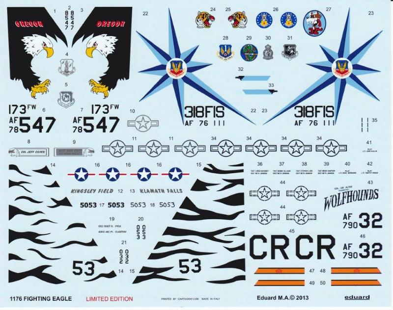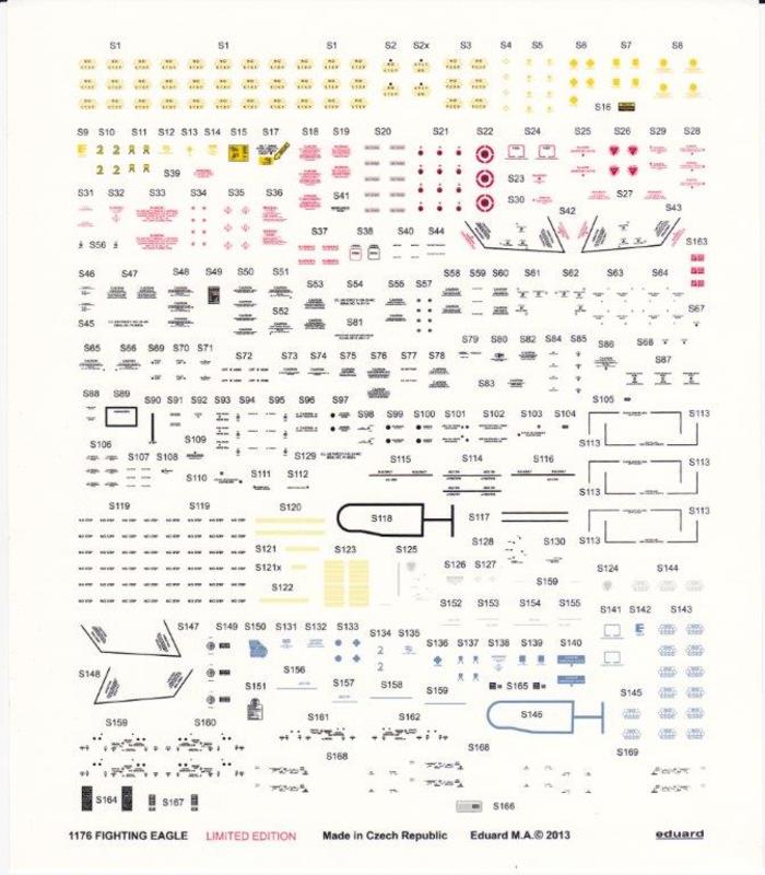 Natürlich sind diesem Limited Edition, auch drei Ätzteilplatinen beigelegt. Hiermit kann der Cockpitbereich des Academybausatzes erheblich aufgewertet werden. Der Schleudersitz erfährt durch das hinzufügen von einigen Ätzteilen eine weitere Detaillierung. Auch für den Triebwerkbereich sind Ätzteile vorhanden. Für die späte Variante der F-15 C in der MISP II Ausführung liegen Verstärkungsplatten zur Erhaltung der Flugzelle bei. Als Zusatz ist noch der Maskiersatz, für die Cockpithaube und die Bereifung zu erwähnen.