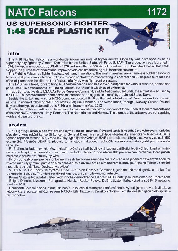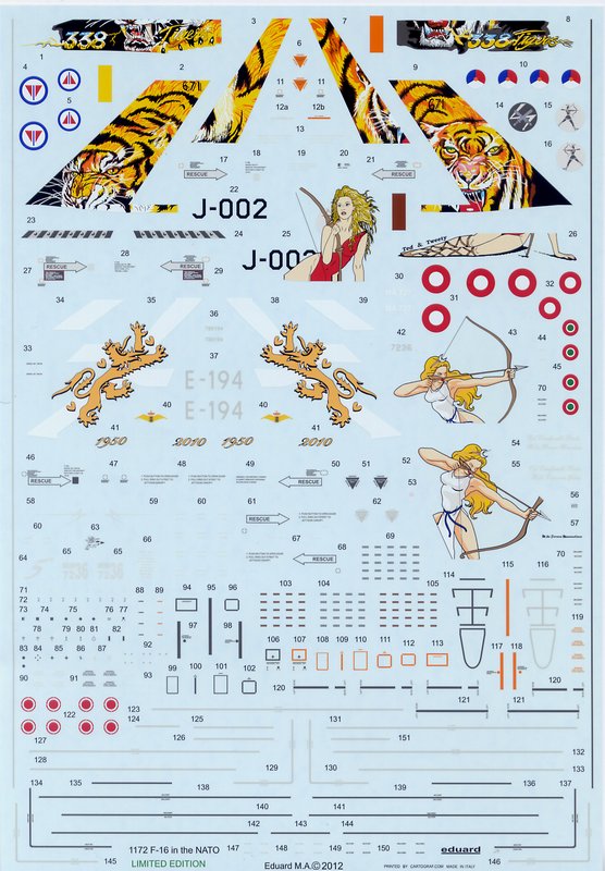 Bemalung und Decals: Eduard gibt Ausschließlich für die Lackierung der F-16 Farben des Herstellers Gunze an. Mittels des hervorragenden, von der Firma Cartograf gedruckten Decalbogens, lassen sich 4 farbenprächtige europäische F-16 markieren.