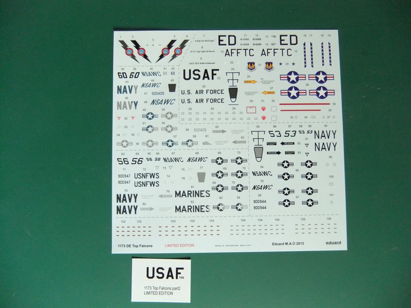 Alles wird abgerundet durch den reichhaltigen Decalbogen, der die Markierungen für eine von drei möglichen F-16 Maschinen der oben genannten Trainingszentren erlaubt und eine F-16 im besonders attraktiven Rot-Weiß-Anstrich, wie sie ab 1995 als persönliche Maschine des Brigadegenerals Richard Engel auf der Edwards Air Force Basis stationiert war.