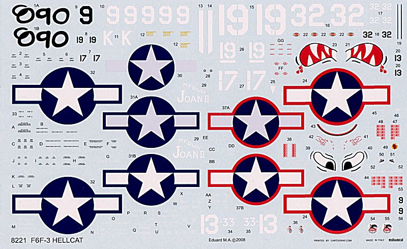 Bemalungen: Die von Cartograf hervorragend gedruckten Abziehbilder bieten die Möglichkeit 5 Maschinen der US Navy darzustellen. Zweifellos die spektakulärste ziert das Titelbild. Leider ist diese von Richard Stambook geflogene Maschine nicht fotografisch nachgewiesen und "nur" eine Rekonstruktion anhand anderer Flugzeuge der Einheit und Erinnerungen (wenn ich die Bauanleitung richtig verstanden habe) ... es wird sicher trotzdem viele Modelle in dieser Bemalungsvariante geben. Eine weitere Ass-Maschine, diesmal eine gut dokumentierte, ist die von Alex Vraciu, die ich wahrscheinlich aus dem Bausatz erstellen werde.