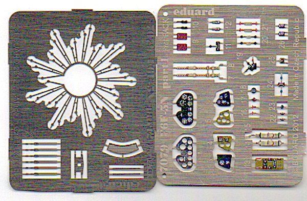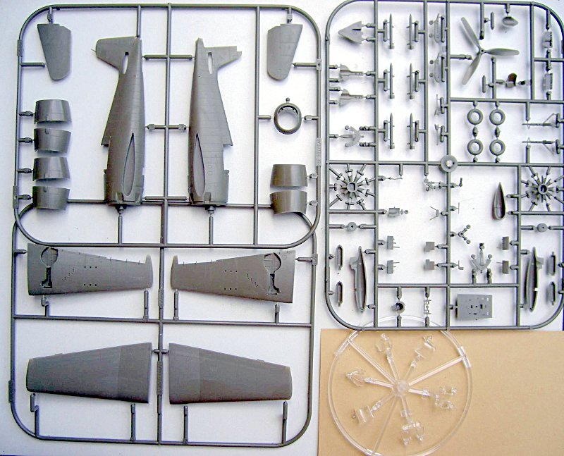 Der Bausatz enthält drei Rahmen mit 70 Teilen, einen Klarsichtrahmen, Maskierfolie, Decals, 2 Ätzteile und die farbige Bauanleitung. Nach den Version F6F-3 und -5 folgt erwartungsgemäß bei Eduard die F6F-5N als Profipack, enthielt doch bereits die erste Ausgabe auch die Radarteile des Nachtjägers. Mit anderen Worten: Die Spritzlinge sind alte Bekannte und entsprechen denen der bereits erschienen Bausätze. (siehe First look) Dies trifft auch auf die Ätzteile zu. Wie gehabt wandern auch hier eine Menge Teile in die Restekiste. Dank der guten Anleitung geht der Bau rasch voran.