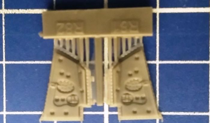 Der Motor besteht aus einem Relief, was wegen der engen Motorhaubenöffnung und des Lüfterrades vollkommen ausreichend sein dürfte. Die Räder mit und ohne Profil haben separate Felgen, so dass die Bemalung einfacher wird. Leider gibt es keine abgeflachten Räder. Für die Fahrwerksrestabdeckungen hat Eduard ein kleines Resinteil mit zwei Klappen beigelegt. Dieses unterscheidet sich vor allem bei der Prägung der inneren Bleche von den Spritzgussteilen. Anzumerken ist hier jedoch, dass diese Klappen nur bei der A-1 und frühen A-2 Verwendung fanden. Man sollte daher diesbezüglich sein Vorbild am besten an Hand von Originalaufnahmen studieren. Außerdem waren diese Klappen im Stand meistens eingefahren, so dass ihre Innenseite nicht sichtbar ist. Bei späteren Versionen, die Bomben oder Zusatztanks am Rumpfträger mitführten, wurden die Restabdeckungen sogar meist ganz demontiert.