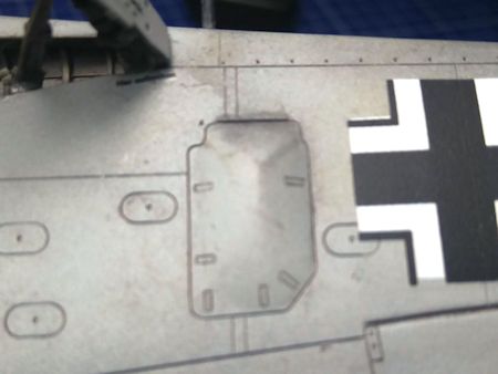 Bei so viel Positivem gibt es leider auch Anlass zur Kritik: Die Waffenabdeckungen für die MG 151/20 auf der Oberseite und die die Abdeckung für die Trommeln der MG FF auf der Unterseite der Flügel sind stark vereinfacht dargestellt. Die Klappe für die MG 151/20 stimmt in Flugrichtung im vorderen Umriss nicht, dieser ist zu schräg. Wichtiger noch, die Klappe war im Querschnitt annähernd dreieckig, nicht rund gewölbt, die Schmalseiten waren deutlich abgeflacht und natürlich annähernd dreieckig. Stärker kommt dies noch zur Geltung bei der MG FF-Abdeckung auf den Flügelunterseiten. Der Umriss stimmt zwar, aber auch hier ist die Wölbung einfach rund dargestellt, obwohl auch dieses Blech im Querschnitt dreieckig war und bis zum Klappenrand kontinuierlich auslief. Sehr gut belegt ist dies bei Filley auf Seite 11, Foto oben links und Seite 13, Foto unten, sowie bei Herrmann et. al. Seiten 187 und 210, Foto unten zu erkennen. Da ich diese Fotos aus urheberrechtlichen Gründen hier nicht wiedergeben kann, habe ich mal Fotos einer von mir gebauten Fw 190 A-4 von Tamiya dazugestellt. Ich weiß, ein anderes Modell ist ebenso wenig wie eine Zeichnung ein stichhaltiger Beweis, aber die Darstellung von Tamiya kommt den Vorbildfotos einfach sehr viel näher! Um hier Abhilfe zu schaffen, könnte man die Abdeckungen von einem Tamiya- oder Dragon/Revell-Kit kannibalisieren, oder man fertigt sich Resinkopien von diesen an, wenn man so was kann. Eduards Resin-Set für den MG 151/20-Waffenschacht ist übrigens auch keine Lösung für das Problem, da es die gleichen Formfehler zeigt. Nicht zuletzt kann man mit Feile und Spachtel versuchen, der Originalform etwas näher zu kommen. Leider zieht sich das Problem mit den Waffenabdeckungen durch sämtliche bisher herausgebrachten Fw 190 A-Kits der neuen Generation. Schade, Eduard, Tamiya, Hasegawa und Dragon haben es doch vorgemacht, warum so ein Patzer bei einem Modell aus neuen Formen?
