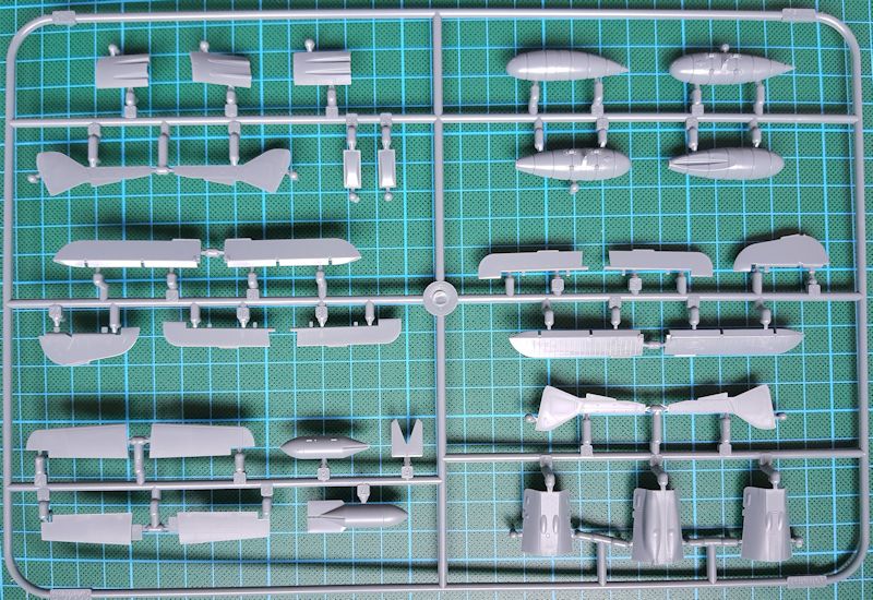 Die Ätzteile sind in erster Linie für die Detaillierung des Cockpits (Gerätebrett, Gerätebank nebst Hebeln und Sitzgurt) gedacht. Weitere Ätzteile sind für das Spornrad, verschiedene Antennen und die Anzeige für das Fahrwerk auf den Flügeloberseiten gedacht.