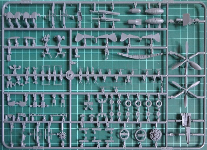 Zwei allgemeine Rahmen mit Kleinteilen wie Fahrwerk, Räder, Propeller usw. sowie die Glasteile sind universell zu verwenden, da sie Teile für beide Hauptmuster enthalten.