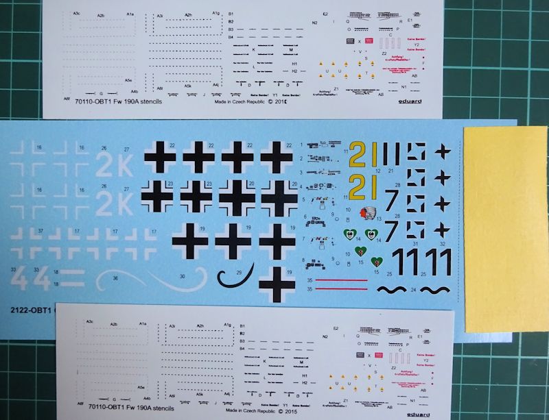 Bemalung: Drei von eduard sauber gedruckte Abziehbilderbögen liefern Wartungshinweise und die Kennzeichen für je drei A-5 oder A-8. Farbangaben erfolgen in Gunze. Ein Bogen Masken erleichtert die Bemalung der Kabinenhaube.