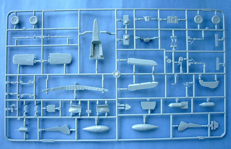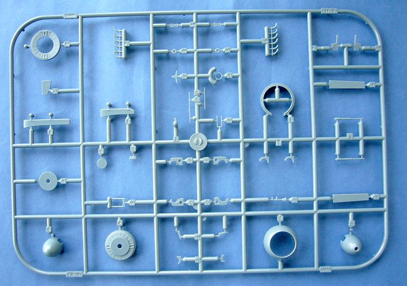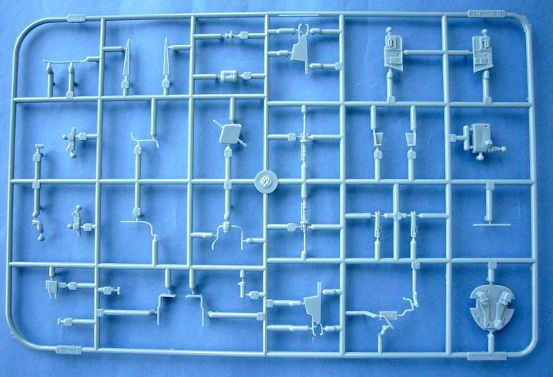 Der Karton ist absolut unverändert und beinhaltet auch die gleichen Gussäste wie bei der Erstauflage, die wiederum in grauem Plastik perfekt und versatzfrei umgesetzt wurden. Es finden sich auch weitere Teile im Karton, da die Teileträger auch noch für andere Varianten der Maschine bei Eduard zum Einsatz gelangen. Die Aufteilung der Äste sieht wie folgt aus: