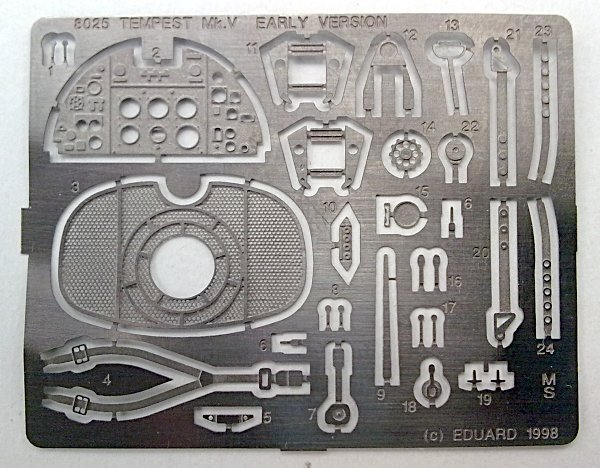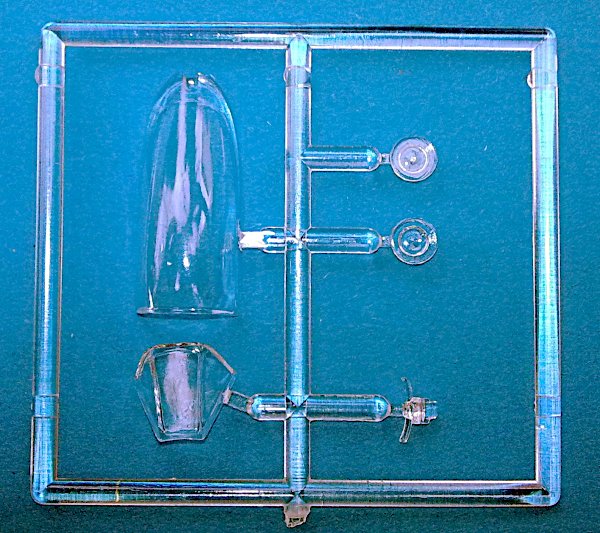 Die in klarem Plastik ausgeführten Haubenteile und Landescheinwerfer sind glasklar und recht dünn ausgeführt. Die Passform der Hauptteile zeigt sich bei Probepassungen als akzeptabel, die störenden Aufsätze müssen natürlich vorher entfernt werden. Bei der mir vorliegenden Profi Pack-Variante hat Eduard die Spritzgussteile noch durch einen kleinen Ätzteilerahmen und einige Resinteile, beide vor allem für das Cockpit und die Fahrwerksschächte sowie Maskierfolien für die Haube ergänzt. Die Teile machen vor allem das Manko der mangelnden Tiefe einiger Spritzgussteile wett und ergänzen den Kit m.E. sehr sinnvoll.