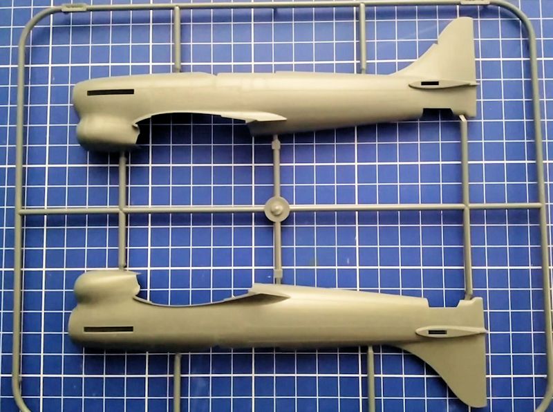 Bausatz: Die Tempest wurde von den Herstellern bisher im Maßstab 1:48 recht stiefmütterlich behandelt. 1979 erschien ein Bausatz von AMT, der teilweise noch immer in den Regalen zu finden ist. Auf ihm basiert die 1992er Auflage von Esci/Ertl. Beide kenne ich persönlich nicht, nehme aber an, dass sie ihrem Erscheinungsdatum entsprechen. 1997 schloss sich schließlich Eduard mit seiner ersten Auflage an, die als frühe und späte Version angeboten wurde. Dieser Shortrun-Kit vermutlich aus Resinformen besaß eine hochglänzende Oberfläche mit feinen Gravuren, große Auswerfersäulen und keinerlei Passzapfen. Für das Cockpit und den Kinnkühler lagen Ätzteile und einige Resinteile wie Cockpitwände und Räder bei. Sein größtes Manko war der um 3 mm zu kurze hintere Rumpf, was nicht ohne größeren Aufwand zu beheben gewesen ist. Ohne den AMT/Esci/Ertl-Kit je gesehen zu haben würde ich doch behaupten, dass Eduards erster Versuch sicher das damals beste Angebot für Tempest-Modelle im Quarterscale gewesen sein dürfte.