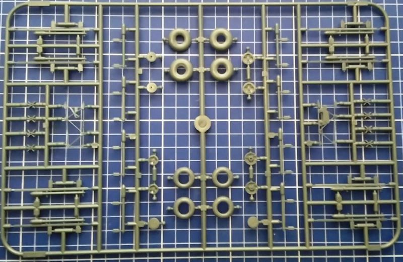 Von Rahmen D bleiben die meisten Teile bis auf die Räder (zwei verschiedene Größen mit dem Dunlop-Logo) und die Instrumentenrahmen für die Cockpitseiten in der Restekiste, er enthält vor allem die Raketenbewaffnung für spätere Varianten.