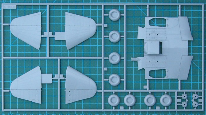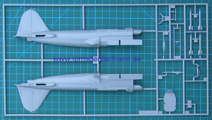 Bausatz: Accurate Miniatures hatte vor einigen Jahren schon die Il-2 als Ein- und Doppelsitzer herausgebracht. Dank einer Kooperation mit Eduard bekommen wir hier einen frühen Doppelsitzer mit geraden d.h. frühen Tragflächen. In dieser Kombination gab es den Bausatz zuvor noch nicht. Insgesamt ist der Kit als gelungen zu bezeichnen. Ein paar Sachen sollte man jedoch beachten. Die sog. Il-2M hatten Tragflächen in der frühen Form. Die Außenflächen waren jedoch mit Holz beplankt. Daher sind die Gravuren dort ein wenig unsinnig und können verspachtelt werden. Wie oben beschrieben, sind auch einige Gravuren am hinteren Rumpf nur für die Il-2 richtig. Daher sollte man sie ebenso verspachteln. Bei der Montage des Hauptfahrwerkes sollte darauf geachtet werden, dass es im Prinzip senkrecht zur Längsachse des Flugzeugs steht.