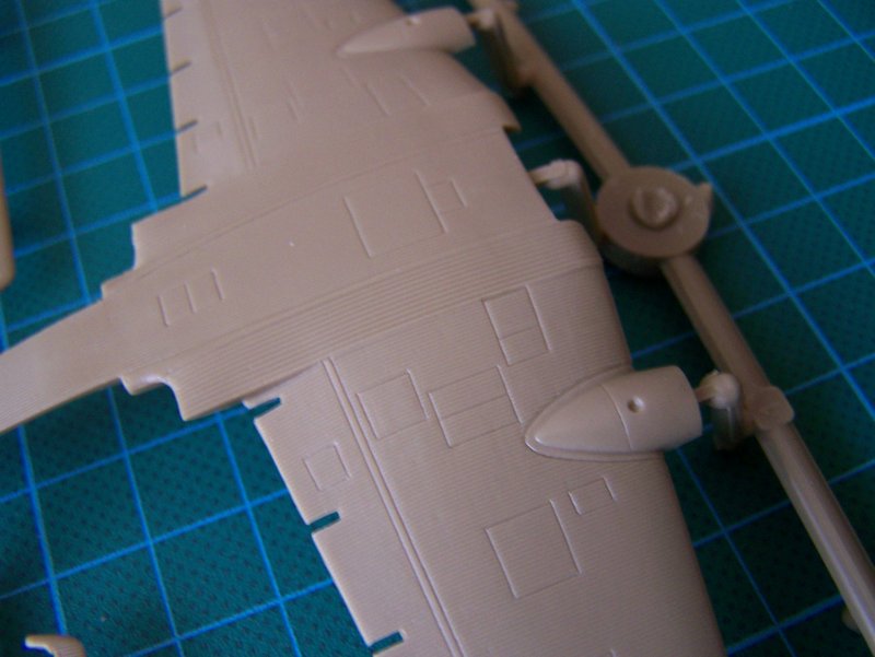 Der Bausatz zeigt eine nachvollziehbare Aufteilung. Die Flügel in Ober- und Unterseite wobei die Passgenauigkeit hier sehr gut ist. Ordentliches Arbeiten erspart hier Schleifarbeiten und vermeidet ein mögliches Beschädigen der dargestellten Wellblechstruktur. Diese ist auch für den Maßstab gut dargestellt.
