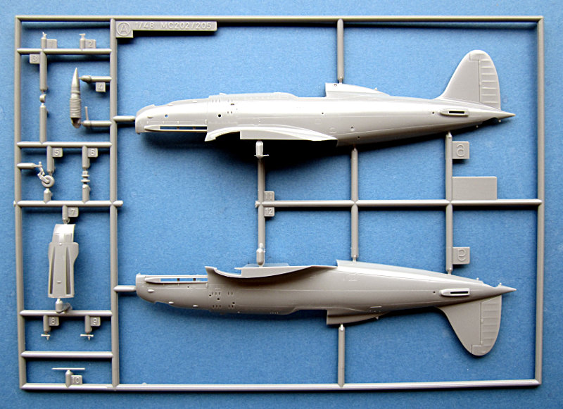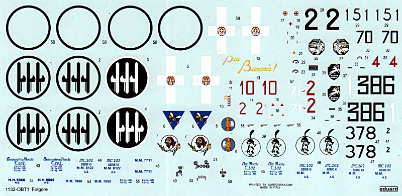Vorbild: Die Macchi MC.202 Folgore ist ein italienischer Jagdeinsitzer, welcher während des Zweiten Weltkriegs entwickelt wurde. Da die MC.200 Saetta aufgrund des schwachen Sternmotors leistungsmäßig nicht mehr dem Stand der Technik entsprach, wurde deren Zelle umkonstruiert, um den V-Motor Daimler-Benz DB 601 aufnehmen zu können. Mit diesem bei Alfa Romeo in Lizenz gebauten modernen 12-Zylinder-Triebwerk erreichte die neue Maschine - die MC.202 "Folgore" (Donnerschlag) genannt wurde - erheblich bessere Flugleistungen. Die Höchstgeschwindigkeit wurde so auf 595 km/h, die Gipfelhöhe auf 11.000 m gesteigert. Der Prototyp flog erstmals am 10. August 1940.