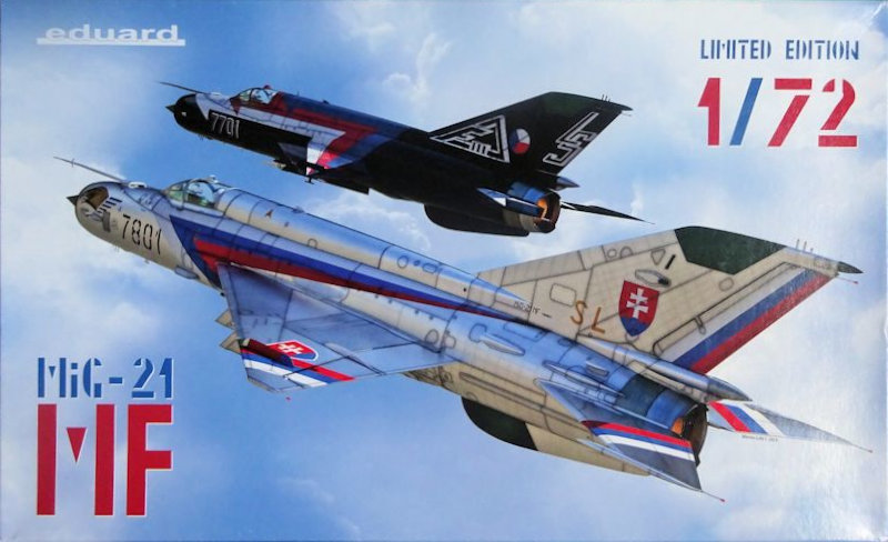 Bausatz: Nach Profipack und Royal Class legt Eduard sein Serienstartermodell MF als Limited Edition vor. Der randvolle, ca. 1kg schwere Karton enthält mit acht grauen und zwei Klarsichtrahmen mit ca. 400 Teilen, Resinteile für die MFN, drei farbige Ätzteilbögen, einen Bogen Masken und drei große Abziehbilderbögen die gleiche Hardware wie die Profipack. Qualität und Passgenauigkeit der Gussäste sind weiterhin super. Es kann je eine MiG-21 aus Gorki (A) bzw. Moskau (B) gebaut werden.