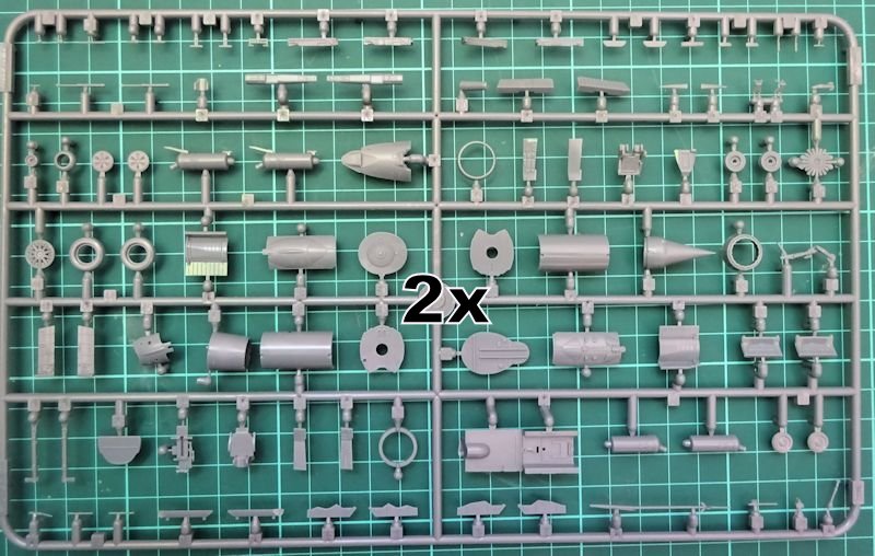 Das Cockpit besteht aus ca. 13 Teilen und kann sowohl konventionell als auch mit bedruckten Ätzteilen gestaltet werden. Diese enthalten die Instrumentenbretter für die MF Jäger und Jagdbomber sowie die MFN womit im Cockpitbereich alles palletti ist. Der Schleudersitz schrumpfte zwar auf drei Teile ist aber inklusiv der Ätzteile für diesen Maßstab ausreichend detailliert. Im Fahrwerkbereich ergibt sich ein ähnliches Bild: weniger Teile aber hohe Qualität. Das Triebwerk bietet alles an Details notwendige für diese Größe.
