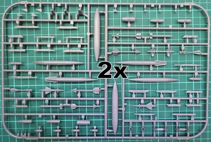 Die Wahl bei der Bestückung mit Außenlasten fällt schwer, da der Bausatz alle möglichen Zusatzbehälter enthält und bei der Bewaffnung kaum eine Option auslässt. Vier Seiten der Bauanleitung helfen bei der Gestaltung in diesem Bereich.