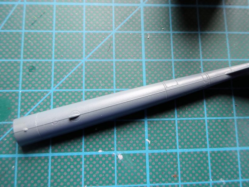 Die Vereinigung des stimmigen Seitenleitwerks mit dem Rückentunnel zu einem Teil führte leider zu einer hässlichen Rückennaht (Hier hat Fujimi die bessere Lösung). Alle Klappen und Ruder liegen als Extrateil bei. Die schlanke runde Rumpfform des Originals kommt wie gewohnt gut rüber und es gibt keine Längenabweichungen wie bei Mitbewerbern (den alten KP-Bausatz mal ausgeklammert). Einige Teile liegen doppelt bei mit der Option der geschlossenen oder geöffneten Darstellung.