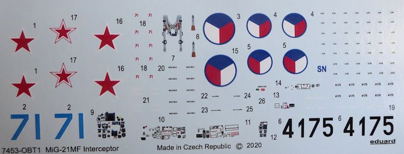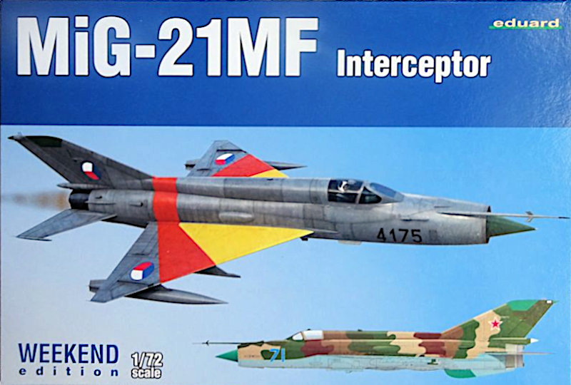 Bausatz: Seit 2018 bringt eduard in regelmäßigen Abständen Varianten seiner MiG-21MF heraus. Bisher erschienen neun reguläre und fünf Eventausgaben. Der gut gefüllte Karton enthält die bekannten drei grauen und den Klarsichtrahmen mit ca. 200 Teilen (von denen für den Abfangjäger nur 150 gebraucht werden) und zwei Abziehbilderbögen.
