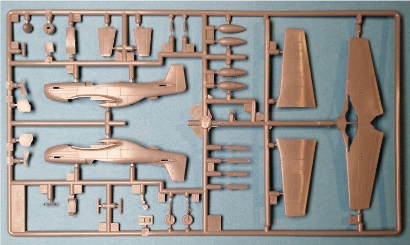 Ohne Zweifel ist dieser aber nach wie vor das Maß der Dinge für eine Mustang in 1/144. An zwei Rahmen befinden sich knapp 40 Teile, aus welchen das am Ende rund 6,5cm mal knappe 8 cm große Modell entsteht. Der erste Blick auf die Teile zeigt sofort, warum dieser Kit trotz des Alters von 15 Jahre immer noch spitze ist. Feine Details und Gravuren zeigen sich an allen Oberflächen und Bauteilen. Das ganze gepaart mit der guten Baubarkeit(aus eigener Erfahrung) verspricht Bastelspaß und das Potenzial für eine große Sammlung an P-51.