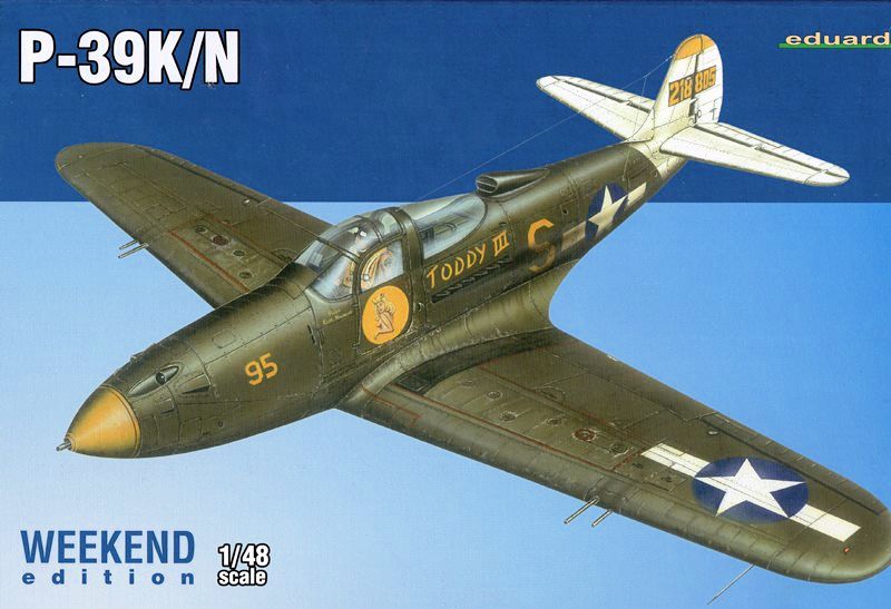 Bausatz: Eduard hat wieder seine hervorragenden Airacobra-Formen hervorgeholt und diesmal eine Weekend-Edition mit Schwerpunkt P-39K/N rausgebracht. In dem auffällig kleinen, aber stabilen Stülpkarton finden sich 139 Kunststoffteile an drei dunkelblaugrauen Rahmen, in wiederverschließbaren Tüten verpackt und sechs Klarsichtteile, ebenfalls separat verpackt