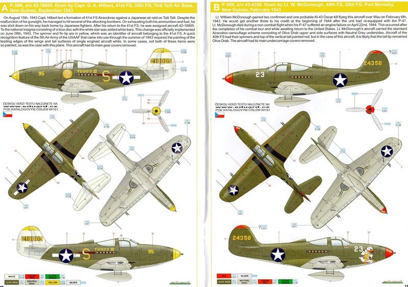 Vorbild: Die P-39 Airacobra war nicht gerade der größte Wurf der Firma Bell, obwohl sie mit einigen sehr modernen Features glänzen konnte: Der Mittelmotor hinter dem Cockpit lag nahe dem Schwerpunkt und ließ viel Platz für die Waffen in der Nase. Die lange Welle, die den Propeller antrieb ging zwischen den Beinen des Piloten hindurch. Das Bugrad-Fahrwerk war ebenfalls richtungsweisend und bot am Boden gute Sichtmöglichkeiten aus dem Cockpit. Der Erstflug fand 1939 statt. Insgesamt wirkte die Airacobra wie ein ausgewogener Entwurf, obwohl nicht immer gut fliegt, was gut aussieht! Die Achillesferse des Typs war die zu schwache Leistung des Allison-Motors, dem ein Turbolader fehlte, insbesondere in Höhen über 3000 m. Dafür war die Airacobra aufgrund ihrer stabilen Zelle im Sturzflug den damaligen japanischen Kontrahenten überlegen. Auch als Erdkampfflugzeug konnte sie sich im Pazifik bewähren. Während die P-39 bei den amerikanischen Luftstreitkräften unbeliebt war und als "Iron Dog" bezeichnet wurde, fand sie in der UdSSR, die von der Airacobra i.R. des Lend-Lease-Abkommens rund 5000 Stück vor allem der Varianten D-1 und D-2 erhielten viel Zustimmung. So sehr, dass die "Cobra" oder "Bell" Gardeeinheiten zugewiesen wurde. Der dreifache Held der Su, Alexander Pokrischkin, erzielte mit ihr 48 seiner 59 Luftsiege. Allerdings gelang es den deutschen Gegnern relativ leicht, der Airacobra wegzusteigen.
