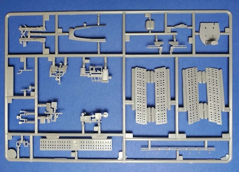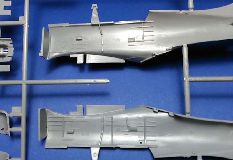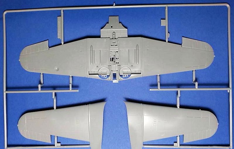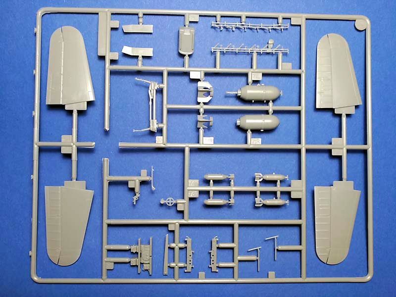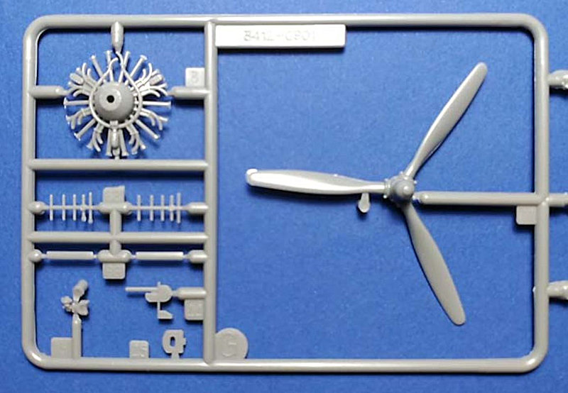 Die Höhenleitwerke bestehen aus jeweils einem Ober- und einem Unterteil. Der Motor besteht aus dem Zylinderkranz und einem Teil für Getriebe, Zündkabel und Pleuel, er ist ausreichend. Das Cockpit ist schon in Plastik ein Modell für sich, kann aber mit den bedruckten Ätzteilen noch um eine oder mehrere Stufen verbessert werden. Hier ist allerdings einiges an Durchhaltevermögen vom Modellbauer gefordert. In Anbetracht der großen Gewächshauskabine dürfte ein solcher Aufwand aber gerechtfertigt sein. Die Kabinenteile sind glasklar und dünn und liegen einmal in geschlossener Form und außerdem auch als separate Teile zur offenen Darstellung vor. Alle Steuerflächen sind in der Neutralposition dargestellt, außer die separaten durchbrochenen Bremsklappen, die in ausgefahrener Stellung und innen Signalrot gestrichen ein typisches Feature des Vorbildes darstellen