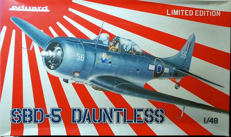Bausatz (Vorgeschichte): Zu den ersten Modellen dürfte der alte Monogram-Kit zählen, den ich auch mal gebaut habe. Fast ohne Innendetails, mit erhabenen Gravuren ist er zwar keineswegs mehr zeitgemäß, doch Revell vertreibt ihn noch immer. Auch Testors und Nichimo (SBD-4) haben Modelle herausgebracht, über die ich aber nichts Genaueres berichten kann. Den Goldstandard der SBD-Kits dürften die Hasegawa-Modelle (SBD-1, -3 und -4) darstellen, die zwar auch schon zwei Jahrzehnte auf dem Tacho haben, aber immer noch durchaus konkurrenzfähig sind. Größte Schwäche dieser Kits sind die Sturzflugklappen. Sie sind nicht durchbrochen und nur im eingefahrenen Zustand darstellbar, womit dem Modell ein grundlegend wichtiges Feature fehlt. Eduard bietet glücklicherweise entsprechende fotogeätzte Klappen an, die Montage ist aber schon wegen der anfallenden "Chirurgie" nicht ganz einfach. Hasegawa war sich wohl dieses Mankos bewusst, denn es gab eine Zeit lang Hasegawa Limited Edition-Kits mit Ätzteilen für die Klappen! Academy bietet noch eine SBD-2 an, über die ich leider nichts Genaueres sagen kann.