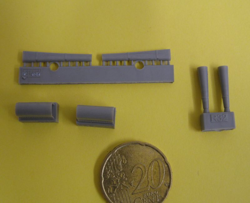Die Tragflächen bestehen aus einem Teil mit scharfer Hinterkante. Quer-, Höhen-, und Seitenruder werden separat angebracht. Das Cockpit wird in Rahmenbauweise gebaut, und später dann in die Rumpfhälften eingesetzt. Die Rumpfhälften sind auch auf der Innenseite im sichtbaren Bereich detailliert (Spanndrähte etc.) Des Weiteren liegen 3 verschiedene Propeller vor (1X vierblättrig, 1X zweiblättrig linksdrehend, 1X zweiblättrig rechtsdrehend) Bei der Wahl des Propellers sollte man daher also auch auf das korrekte Flugzeug achten. Hier hilft die Bauanleitung leider nicht groß weiter, und man muss wohl oder übel auf Literatur oder das Internet zurückgreifen. Da beide Motorausführungen (Hispano-Suiza- oder Wolseley-Viper-Motor) vorhanden sind, kann mit den Resinteilen auch die korrekte Auspuffanlage verbaut werden.