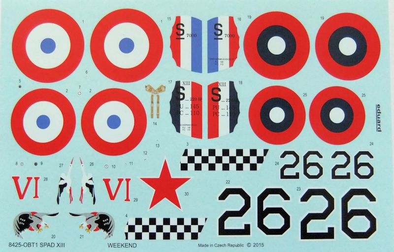 Vorbild: Die SPAD XIII war eine in den Abmessungen leicht vergrößerte Weiterentwicklung des französischen Erfolgsmodells SPAD VII. Trotz der äußerlichen Ähnlichkeit war die innere Struktur komplett überarbeitet, ein leistungsstärkerer Hispano-Suiza 8Ba Reihenmotor und ein zweites MG eingebaut worden. In Dienst gestellt wurde die SPAD XIII ab 1917 und blieb bis zum Ende der 1920er Jahre in verschiedenen Ländern im Einsatz. Dazu gehörten die USA, die Sowjetunion bzw. Weißrussland. Dort wurde sie im Bürgerkrieg von beiden Seiten eingesetzt. Besonders beliebt war das Jagdflugzeug bei den amerikanischen Freiwilligenverbänden, die ab 1917 auf Seiten der Franzosen gegen das deutsche Kaiserreich kämpften. Der berühmteste Vertreter der USA war Eddi Rickenbacker, der mit der SPAD XIII 26 Luftsiege errang. Insgesamt wurden etwa 7300 Flugzeuge gebaut.