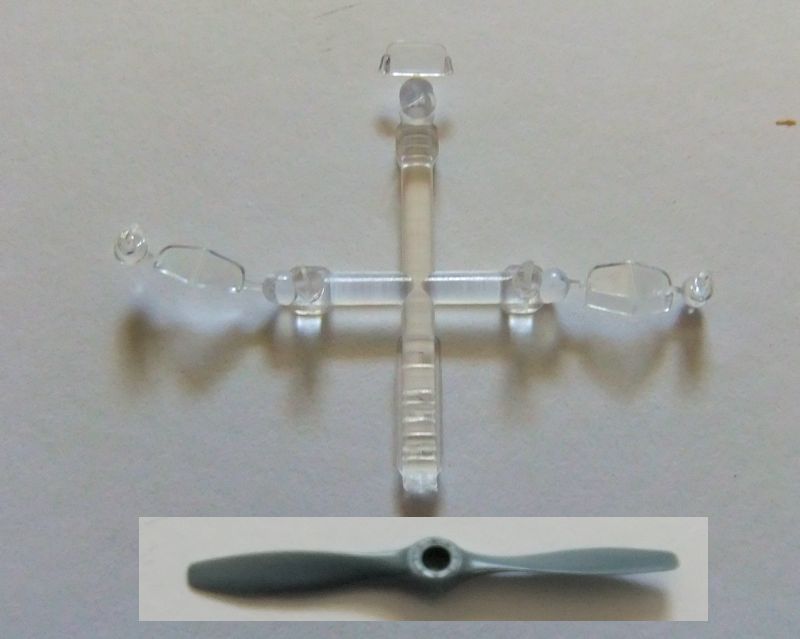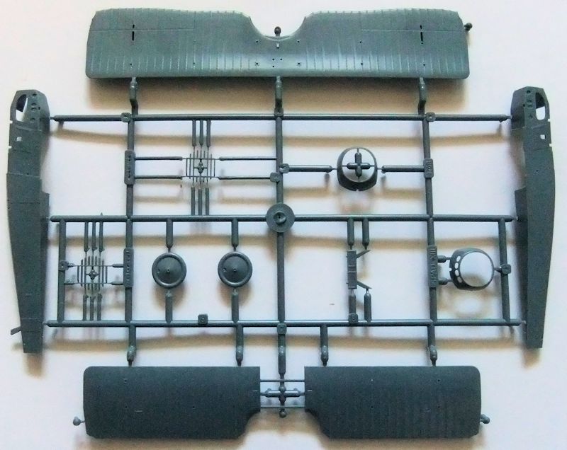Der Aufbau des Rumpfes ist etwas ungewöhnlich, weil er aus drei Hauptkomponenten besteht. Zwei Hälften und das obere Teil mit dem angegossenen Höhenleitwerk. Auch muss am Vorderrumpf noch die untere Verkleidung angebracht werden. Die Passung ist aber in Ordnung. Es wirkt alles nur etwas kompliziert. Sehr aufwändig und darum auch nicht anfängertauglich, dürfte die Konstruktion der Doppeldeckerflügel mit den vielen Verstrebungen sein.