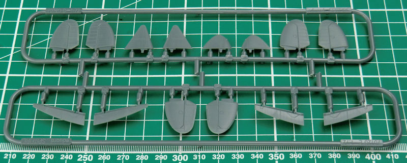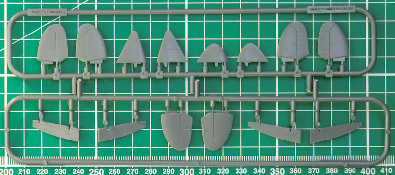 Die Abspritzung der Bauteile ist einfach Spitze. Es gibt feine versenkte Strukturen. Der Bausatz ist sehr modular aufgebaut und es wird sehr viele Ableitungen der Spitfire in 1/72 geben. Somit sind recht viele Teile für die Restekiste mit dabei. Eduard liefert alle Bauteile für eine FMk. IX. So hat man kaum sichtbar eine andere Tragflächenoberseite umgesetzt.