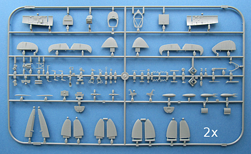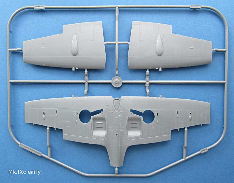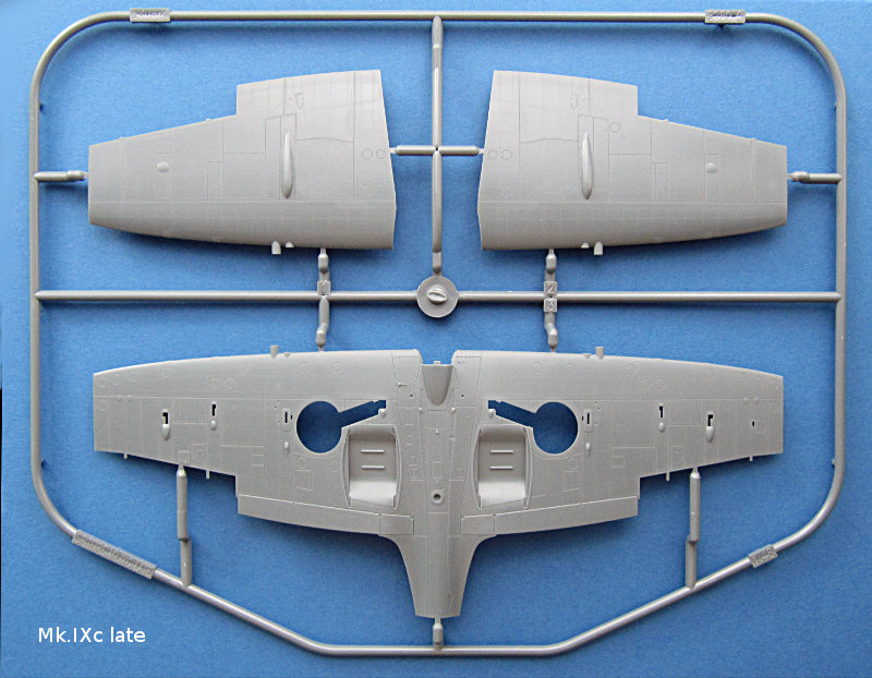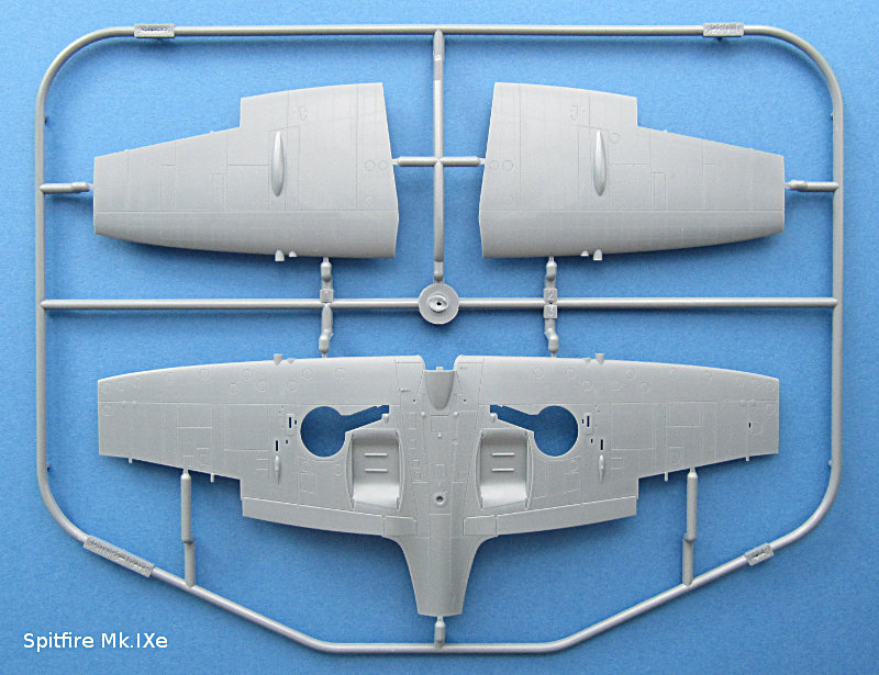 Im gut gefüllten schwarzen Karton mit goldener Spitfire-Skizze befinden sich Teile zum Bau von 2 Supermarine Spitfire Mk.IX in verschiedenen Versionen. Dazu liegen 3 verschiedene Flügel bei: je einmal für späte Spitfire Mk.IXc, frühe Mk.IXc und Mk.IXe. Somit lassen sich nicht jegliche beliebige Bemalungsvarianten bauen. Allerdings hat(te) Eduard die Flügelspritzlinge und auch ganze Bausätze als Overtree Editionen (nur Spritzlinge in neutraler Box) herausgebracht, wenn auch nur für einen begrenzten Zeitraum.