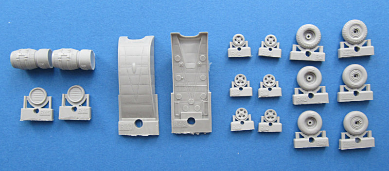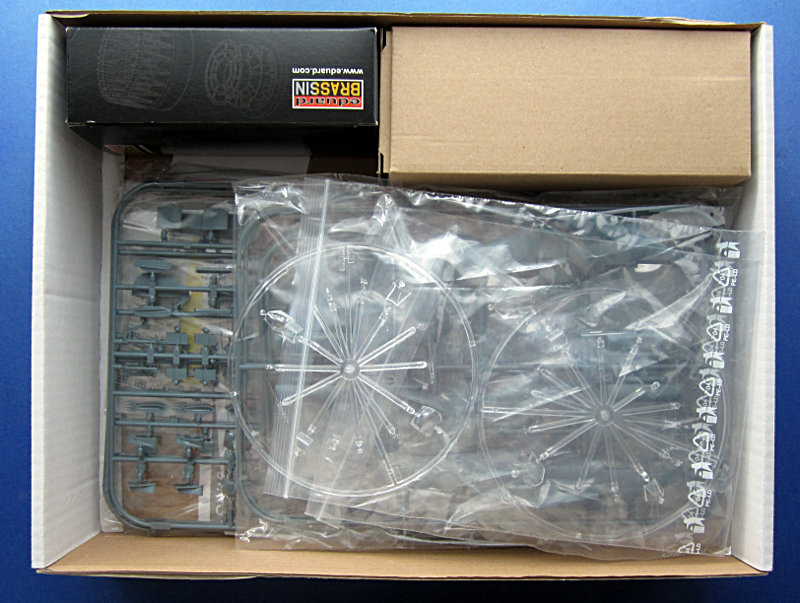 Apropos kaufen, nach der Royal Class - die uns leider als Muster erst recht spät erreicht hat – erschien am 13. August auch die Special Edition „Nasi se vraceji“, welche nur über Eduards Webshop zu beziehen war. Zu meinem Gebutrtstag habe ich mir das gute Stück geleistet und auch wenn die Ausstattung auf den ersten Blick nicht ganz so umfangreich wie bei der RC ist, gibt es doch einige interessante Merkmale. Enthalten sind zwei Bausätze, wobei die Auswahl unter 4 Flügeln (2mal E-Wing) fallen kann. Die die beiliegenden Räder in Resin sind ebenfalls derart ausgerichtet und zeigen zweimal profilierte Reifen und einmal glatte. Dies ist logisch, da sich hauptsächlich Nachkriegsbemalungen aus der CSSR oder von abgegebenen tschechoslowakischen Maschinen in der Box befinden. Die Slippertanks liegen bei, Bierpokal, Landeklappenätzteile und Resinfässer „fehlen“.
