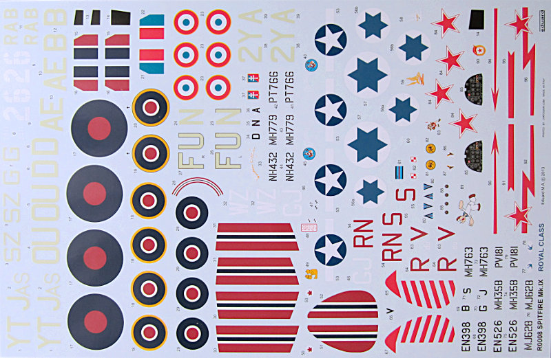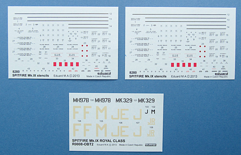 40 – vierzig – verschiedene Vorbilder können nachgebildet werden. Zwei A4 große Decalbögen von Cartograf enthalten diese Markierungen. Hinzu kommen noch zwei kleine Bögen Wartungshinweise von Eduard und ein kleiner Korrekturbogen. Dem Bausatz liegt auch ein spezieller Briefumschlag, mit Sonderbriefmarke und Poststempel vom 13.08.2013 bei... also auch etwas für Philatelisten. Nicht zuletzt ist auch ein Buch (softcover im A4 Format) von Zdenek Hurt enthalten. Hier wird auf die Geschichte der tschechoslowakischen Spitfire während und nach dem Zweiten Weltkrieg eingegangen. Es gibt kurzbiografiern und die Bemalungsvarianten werden auch anhand von Vorbildfotos dargestellt.... allerdings Alles in tschechisch. Natürlitsch.