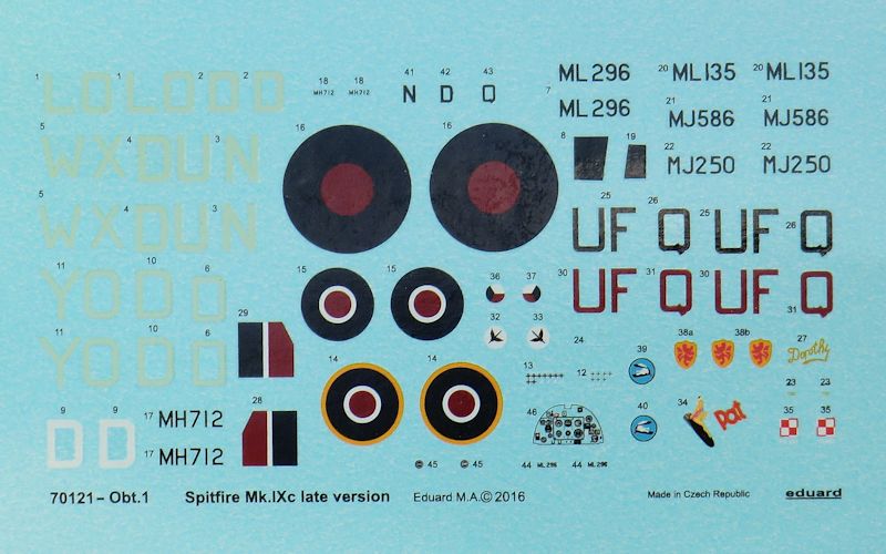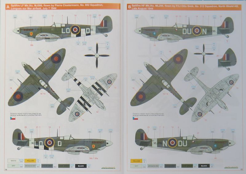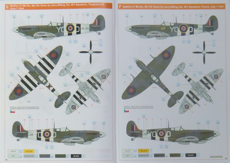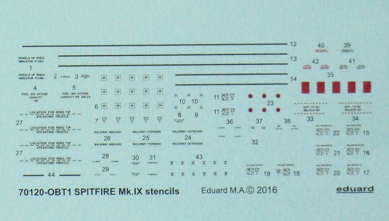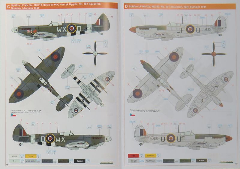 Die beiden Decalbögen sind tadellos im Register gedruckt. Es gibt scheinbar jeden Wartungshinweis der Spitfire. Bei den Farbangaben bezieht man sich auf das System von Gunze.
