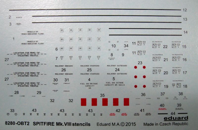 Einziger Unterschied, es liegen keine Ätzteile bei, und die Decals sind nur für zwei, allerdings andere Maschinen vorhanden. Die Stencils sind wieder identisch mit denen des Profipaks.