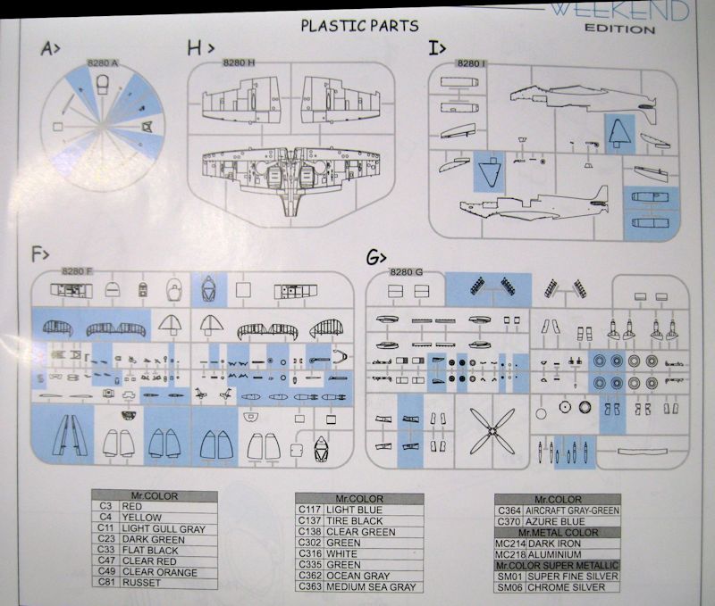 Bausatz: Bei einer Weekend Edition erwartet man doch eher einen deutlich abgespeckten Bausatz. Nicht so bei Eduard. Es handelt sich um dieselben Spritzlinge wie in der Profi Edition.