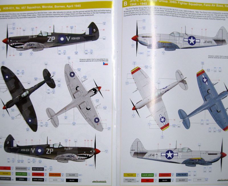Bemalungsvarianten: Die Bemalungsvorlage für die beiden Typen beinhaltet die eduardtypische Vierseitenansicht, incl. Farbangaben.
