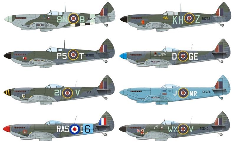 Vorbild: Die Spitfire Mk.XVI war mit der Mk.IX in den meisten Punkten mit Ausnahme des Motors, einem Merlin 266, identisch. Dieser Motor wurde auf der Basis des zweistufigen Merlin 66 konstruiert, und wurde ursprünglich für kanadische Mosquitoproduktion geplant. Wegen eines etwas höheren Ladeluftkühlers wurde eine neu gwölbte obere Verkleidung eingeführt. Die Bewaffnung der meisten Mk XVI bestand aus zwei 20 mm Hispano-Kanonen mit jeweils mit 120 Granaten und zwei Kaliber .50 Browning Maschinengewehre mit je 250 Patronen. Eine 227 kg Bombe könnte unter dem Rumpf mitgeführt, eine 114 kg Bombe könnte unter jedem Flügel angebracht werden.