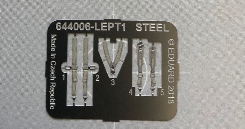 Neben dem Instrumentenbrett liegt auch noch ein kleiner Ätzteilesatz mit bemalten Gurten bei.