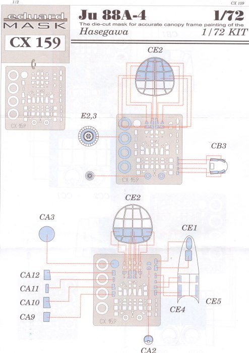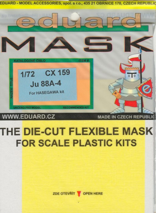 Wer einmal mit den gelben vorgestanzten Masken von eduard gearbeitet hat, der hat sicher deren Wert erkannt. Für mich ist das Maskieren der Glasteile immer ein Horror. Seitdem eduard von den Vinylmasken auf das gelbe Material umgestellt hat, habe ich die Lösung gefunden. Auch für die neue Junkers von Hasegawa gibt es nun eine Maskenset. Die Junkers Ju 88 hat ja nun auch viele kleine Glasteile, wo es ansonsten richtige Arbeit zu erledigen gilt! Der beiliegende Maskierungsplan erleichtert alles noch mal. Bei der Verarbeitung dieser Masken gab es bisher bei mir keine Probleme.