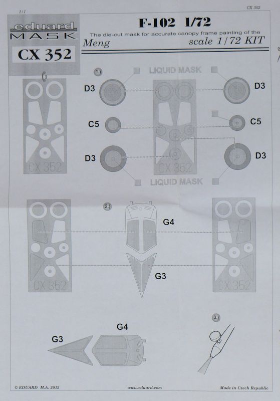 Für die gelungenen Bausätze der Convair F-102A von MENG hat eduard ein Maskenset herausgebracht. Es enthält einen gelben Bogen für Räder und Klarsichtteile des Bausatzes.