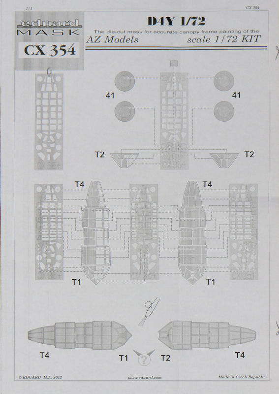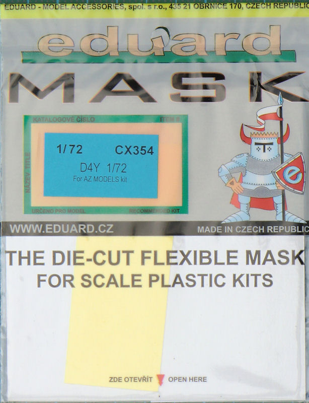 Seit einiger Zeit bringt eduard immer wieder auch Maskensets für recht exotische oder Short-Run-Kits heraus. Hier stelle ich das Set für den AZmodels-Bausatz der Kugisho D4Y Suisei/„Judy“ in 1/72 vor. Dieses Set enthält einen gelben Bogen für die Hauptfahrwerksräder und die umfangreichen Klarsichtteile dieses Bausatzes.