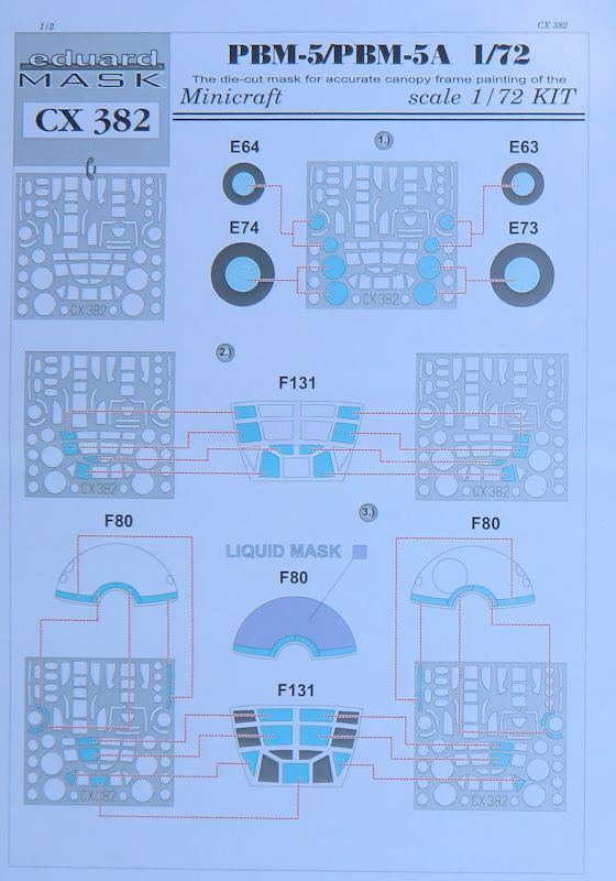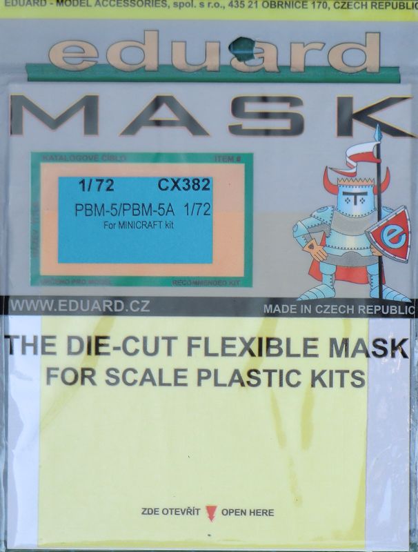 Für die Martin PBM-5/PBM-5A von Minicraft hat eduard ein Maskenset herausgebracht. Es enthält einen großen gelben Bogen für zwei Räder des Hauptfahrwerkes und die Glasteile des Bausatzes.