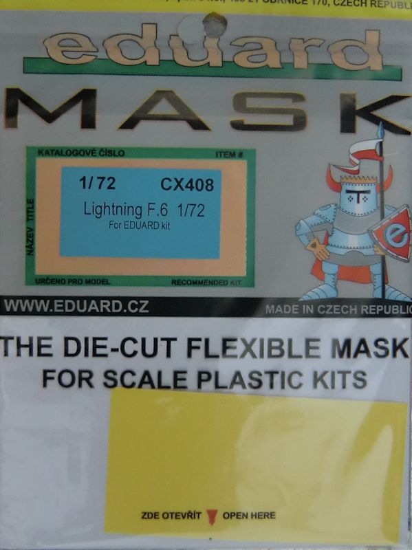 Für den Bausatz der English Electric Lightning F.6 hat eduard ein Maskenset herausgebracht. Es enthält einen gelben Bogen für Räder und Haube des Bausatzes.