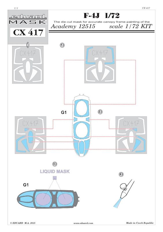 Für den neuen Bausatz der McDonnell Douglas F-4J Phantom II von ACADEMY hat eduard ein Maskenset herausgebracht. Es enthält einen gelben Bogen für die Kanzel des Bausatzes. Nach dem Anbringen der Masken müssen noch die Lücken mit Hilfe von Maskol geschlossen werden.